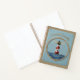 Find your harbor with the "Coastal Serenity" journal. This cover features a striking faux-embroidery illustration of a classic red and white striped lighthouse standing tall amidst churning blue waves. The beams of light, the soaring seagulls, and a distant sailboat are all rendered with intricate, high-definition "needlework" textures. Encased in a realistic embroidered rope circular border on a serene sky-blue linen background, this design brings the calming essence of the seaside to your desk.