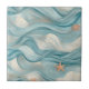 Coastal Starfish on Aqua Sand Waves Pattern (9) Tile
