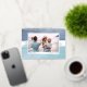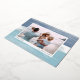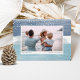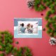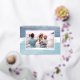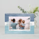 Chic coastal style holiday card adds nautical flair to your Christmas greetings. Perfect for sharing a vacation photo, or for families who live in coastal, tropical, warm weather or island locales, this elegant design features your favourite horizontal or landscape orientated photo on a background of blue and sea green watercolor stripes, with a sprinkle of silver foil at the top and bottom. Add your custom holiday message and your names or family name.