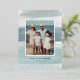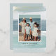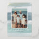 Chic coastal style holiday card adds nautical flair to your Christmas greetings. Perfect for sharing a vacation photo, or for families who live in coastal, tropical, warm weather or island locales, this elegant design features your favourite photo on a background of sea green watercolor stripes, with a sprinkle of silver foil at the top and bottom. Add your custom holiday message (shown with "seas and greetings") and your names or family name. Personalise the back with three additional photos.