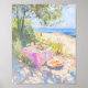 Coastal Summer Picnic Painting Print – Serene Beachside Wall Art