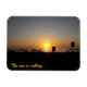 Capture the essence of a perfect summer evening with this atmospheric sunset photography magnet. Featuring a stunning golden sun dipping below the horizon, framed by the silhouettes of a peaceful beach, this card evokes feelings of serenity and warmth.