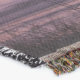 A quality printed throw has its advantages. This is a much finer weave throw than its loopier cousins, and though lighter, it is worth the investment for custom room accessorizing. The back is much prettier than the typical brown, and the fringe on the long sides very vivid, the selvage nicely done. Before photographing, I washed the throw in cold water, delicate, with a thicker woven throw the same size. On tumble dry low, this throw was dry in half the time as the other. This is a very practical quality if you use throws for furniture covers or to wrap up in frequently. The sleekness of the fabric makes it a great layer for accenting or protecting without the feeling of sitting on too much stuff. Perfect for napping or when you feel a light chill coming on. The color printing is beautiful and on this fabric, matched the design and color of my Photoshop image. This is an advantage for blending room fabrics and colors. The fringe on the short sides prints the colors from the design image and therefore varies from the side fringe. I streaked a white fractal line through the plaid pattern to give the illusion of weaving. This printed as crisp as an illusory thread, and put some white in the short side fringe, showing another advantage of print vs loomed- for artistic purposes, line lines, detail, and color integrity can be planned and preserved. My loomed throws have color limitations and more of a needlepoint texture. Print throws reproduce an exact image. The throw felt a little stiff straight out of the package, but this went away in the first delicate wash. Of course I searched the wash water for ink or bleeding and there was none.