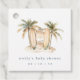 Complete your coastal celebration with this personalised favour tag by Redwood & Vine Design Co. The design showcases softly painted palm trees, sandy shore, and three surfboards, paired with customisable event details in a modern serif font. Perfect for tying onto gift bags, jars, or boxed treats, these tags are ideal for tropical, surf, or beach-themed showers and coordinate perfectly with matching coastal stationery and décor.