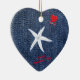 Coastal Theme Valentine's Day Red Heart & Starfish Ceramic Tree Decoration