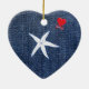 Love is in the air with this gorgeous coastal themed heart-shaped Ceramic Ornament. Celebrate Valentine's Day with this seaside-inspired addition to your nautical or beach style home decor. The Ceramic Ornament features a blue faux tweed background with a white starfish holding a red heart-shaped balloon. The text reads "Happy Valentine's Day" but may be edited for personalisation at no additional cost. The back of the Ornament has the same design but without the text making it easy to add a name or sentiment of your choice. The Ornament is perfect for Valentine trees and wreaths, package ties, favour bag gifts, seasonal craft projects, hostess or teacher gifts, or school Valentine exchanges. Browse our coordinating products available in this popular design including cards, stickers, magnets, paper plates, napkins, pillows, and more!