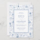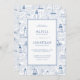 This elegant timeless coastal wedding invitation features a seaside toile de jouy pattern of hand drawn lighthouses, sailboats, and ocean waves, reminiscent of summer on the New England coast.