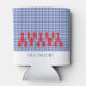 Coastal Town Name Red Lobsters Blue White Check Can Cooler