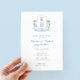 Celebrate love and 'tying the knot' with our exquisite couples wedding shower invitation featuring a hand-painted coastal monogram crest. This elegant invitation showcases a blue banner, ship rope frame, and charming motifs of white and blue hydrangeas, greenery, anchors, and oyster shells. The reverse side features wide pale blue and white stripes, adding a touch of nautical charm. Perfect for a seaside-themed celebration, this invitation beautifully captures the essence of coastal romance and sets the tone for an unforgettable wedding shower. Please note you can change the colour of the stripes on the back (currently a pale blue) by changing the background colour. This can be done inside the design tool (underneath the text customisation boxes, please click to access the design tool).