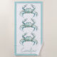 This fun beach towel features beautiful coastal crabs in soft watercolor shades of blue and green and a matching border of blue green. Personalize with your choice of name or special text.