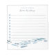 Personalise this coastal chic lined to-do list notepad with two lines of custom text in classic navy blue script and serif lettering. Design features a school of blue watercolor fish swimming along the bottom. Shown with "from the desk of [Name]" and lined checkboxes to keep all your most important tasks organised.