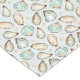 This coastal chic table runner for your beach house, patio, or salty abode features a pattern of soft cream and aqua watercolor oyster and pearl illustrations.