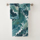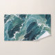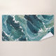 A digitally created depiction of turbulent sea waves in various shades of blue and green with white highlights simulates the frothy crests of water. The stylised nature of the waves gives a sense of movement and the intricate layering of colours adds depth to the aquatic theme.
