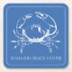 Coastal White Crab on Classic Blue Personalised Square Paper Coaster