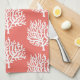 Coastal white sea coral silhouettes patterned kitchen towel in bright coral pink.