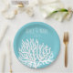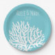 Coastal White Sea Coral Couple's Names Wedding Paper Plate