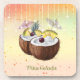Coaster set of six in a Coconut Pina Colada design in mixed nature colours of orange, pale yellow, coconut and pale lavender. Thanks to Creative Fabrica for some of the elements in the design.