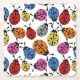 Ladybugs are well-known and well-loved the world over. With nearly 5,000 species worldwide and 500 species indigenous to North America, that a lot of love. What's not as well know is that ladybugs come in a wide variety of colours, including red, orange, pink, yellow and black. They can have up to 20 spots or none at all. In addition to their pest control, aphid-eating talents, there are LOTS of legends about the ladybuy, beginning with how it was named. The most enduring tale supposedly comes from the Middle Ages when swarms of insects were destroying crops. The farmers prayed to the Virgin Mary for help and ladybugs arrived, eating the pests, saving the crops. The farmers called the insects "The Beetles of Our Lady" which, overtime, became "ladybugs". The other stories, myths and superstitions include: many believe that a ladybug is lucky, but killing one can bring misfortune. The French believe that when a ladybug lands on you, any illness you have flies away with her. Even the number of spots on a visiting ladybug are said to be foretelling . . . if more than seven, it's a sign of pending famine, if less than seven a bountiful harvest is coming; the number of spots is also supposed to predict how many children one will have. This colourful, whimsical design is a fun homage to this remarkable little bug. Offered here on these charming, paperboard coasters, they make a delightful addition to your home decor.
