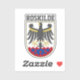 Coat of arms of the Danish city of Roskilde. The motif is known from seals from the 1250's. The species or meaning of the bird is unknown but it has been speculated that it is derived from the German eagle. Another proposal for the origin of the bird is that is canting for Høgekøbing (hawk-city) a city whose population allegedly was moved to Roskilde. The stream is canting.