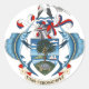 The coat of arms of the Republic of Seychelles shows a shield, in which a giant tortoise is located on green grounds. On the ground there is a coco de mer palm tree. Behind it there is a blue sea with two islands and a sail ship to be seen
