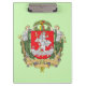Clipboard with design with coat of arms of Vilnius, capital city of Lithuania; with illustration of saint Christopher and infant Jesus
