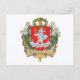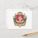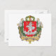 Postcard with design with coat of arms of Vilnius, capital city of Lithuania; with illustration of saint Christopher and infant Jesus