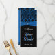 This cobalt blue and black damask menu card matches the wedding invitation shown below. It is designed on a rack card with a glossy front, and matte finish on the back. If you would like a menu card on invitation paper to match your invitations, or if you have any requests for additional items or changes, please email niteowlstudio@gmail.com with your request.