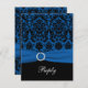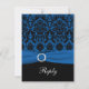 This cobalt blue and black damask RSVP card has a blue PRINTED ON ribbon and jewel brooch that matches the wedding invitation shown below. If you require any other matching items, please email your request to niteowlstudio@gmail.com.