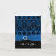 This cobalt blue and black damask thank you note card has a blue FAUX ribbon and jewel brooch that matches the wedding invitation shown below. You can also select a 5x7 size if you want something larger. If you require any other matching items, please email your request to niteowlstudio@gmail.com.