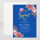 Cobalt Blue and Pink Floral Sweet 16 Birthday Invitation