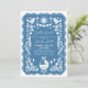 This bold Cielito Lindo baby shower invitation features a deep cobalt blue background with traditional papel picado motifs and whimsical Mexican folk art illustrations. It's a perfect choice for a vibrant baby boy shower or a fiesta-themed celebration full of joy and colour.