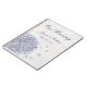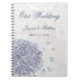 This sweet personalised Wedding planner notebook has a dark cobalt blue, soft periwinkle blue and soft lilac purple hydrangea floral bouquet at the bottom left with some petals flying to the right. In the background, there is a faded damask pattern and a stripes graphic. At the top, Our Wedding is written. In the middle, you can easily customise the names of the bride and groom along with the date of the wedding ceremony. This would be great for a spring or summer wedding.
