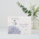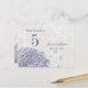 This sweet Wedding table number postcard has a dark cobalt blue, soft periwinkle blue and soft lilac purple hydrangea floral bouquet at the bottom left with some petals flying to the right. In the background, there is a faded damask pattern and a stripes graphic. At the top, you can easily customise the table number along with the names of the bride and groom and the date of the wedding ceremony. This would be great for a spring or summer wedding.