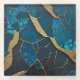 Cobalt Blue Marble Mosaic Gold Inlay Veins Glass Coaster