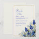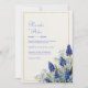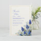 Add a touch of vibrant, fine-art elegance to your celebration with this stunning botanical arrangement. The design features deep cobalt blue muscari—known as grape hyacinth—clustered in the corner with delicate, sky-blue wildflowers and slender green foliage. A minimalist, double-line gold rectangular frame provides a clean and modern border, while the background consists of a warm, cream-colored textured paper that mimics the feel of high-quality artist cardstock. The rich blues and organic textures evoke a fresh, sophisticated garden atmosphere that is both timeless and trendy. This versatile botanical layout is an exquisite choice for a classic spring garden wedding or an elegant outdoor ceremony. The striking cobalt and soft blue palette makes it a flawless fit for coastal or nautical celebrations, mirroring the hues of deep water and bright skies. Beyond the ceremony, this design works beautifully for a sophisticated bridal luncheon, a fresh morning engagement party, or a whimsical garden-themed rehearsal dinner. It pairs effortlessly with wedding colors like navy blue, metallic gold, sage green, and warm ivory.