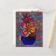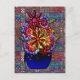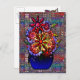 Multicolor flower arrangement with butterflies in cobalt blue vase. Abstract geometric digital pattern background artwork. Done as traditional work, then completed and given faux metallic texture, I think of as a digital quilt using Adobe Photoshop CS2.