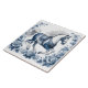 A cobalt charger, captured in a dynamic, mid-stride pose, graces this ceramic tile. Delicate blossoms intertwine within the intricate floral patterns adorning the horse's body, flowing mane, and tail. Its decorative saddle or harness echoes the same floral motif. The artist subtly emphasizes the animal's powerful muscles and fluid movement. A border of detailed floral designs in the same rich blue hue frames the scene. The symmetrical composition and slightly elevated perspective accentuate the horse's dynamic posture. Muted colours and diffused lighting create a serene, vintage atmosphere, reminiscent of classic tile artistry. This meticulously rendered design exudes a sense of timeless beauty and craftsmanship.