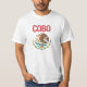 A t-shirt featuring a distressed Mexican eagle featuring the last name Cobo.