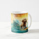 Immerse yourself in the playful world of canine adventure with this captivating painting. A spirited dog takes to the waves, skilfully riding the surf on a sun-kissed beach. The vibrant artwork beautifully captures the essence of beachside excitement as the dog fearlessly rides the waves, embodying the spirit of fun and freedom. With a harmonious blend of colours and dynamic brushstrokes, this piece brings the joy of surfing and the beach right into your space, making it a delightful addition to any art collection