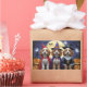 A playful Halloween scene featuring a mischievous little pup peeking out of a carved pumpkin, surrounded by spooky-fun fall vibes. With cheeky charm and autumn colours, it’s the perfect touch of humour for the season.