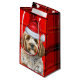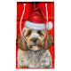 A cute Cockapoo dog dressed for the season in Santa's hat, pairs with a red and black holiday plaid to create a wonderful gift bag for the dog lover's holiday season.