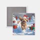 Cockapoo Running in Snow with Christmas Hat Magnet