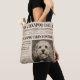 Vintage-style Cockapoo Tote Bag featuring a classic newspaper design with a charming Cockapoo portrait. Perfect for Cockapoo owners and dog lovers who want something unique and full of personality. A great gift idea for anyone obsessed with their dog and loves timeless vintage style.
