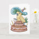 cockatoo perched on birthday cake fancy hat card