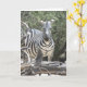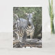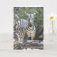 Zebra in herd looks quizzically at the camera, with ear cocked. Birthday wishes wait inside.
