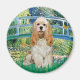 Lily Pond Bridge by Claude Monet, adapted to include a Cocker Spaniel. With varying hues of green and blue, this serene scene is one of Monet's most popular paintings.