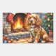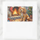 Cocker Spaniel by Fireplace with Christmas Lights Rectangular Sticker
