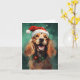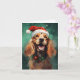 Colourful and joyful Christmas design with a Cocker Spaniel wearing a Santa hat.