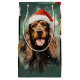 Colourful and joyful Christmas design with a Cocker Spaniel wearing a Santa hat.