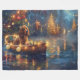 Set sail into the magic of the holiday season with this beautifully detailed illustration, showcasing a proud dog sitting in a festively decorated boat, gliding across a serene Christmas lake. The twinkling lights from nearby pine trees reflect off the water, casting a warm, festive glow that enhances the cosy ambiance. Ornaments dangle from the boat's sides, while glowing lanterns light the way, creating a scene that captures the true essence of Christmas warmth and joy. This nostalgic artwork brings a touch of holiday magic to any space, perfect for those who cherish the spirit of the season.